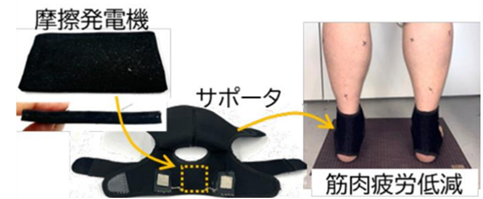 当社の多孔質ポリイミドフィルムの特異なナノ構造により、高い負帯電性を実現し、摩擦(物体の接触・剥離)によって生じる電流を取り出すことで外部電源を一切必要とせず、微弱電流療法を実現することができます。この革新的な技術により、スポーツや健康維持だけでなく、医療・福祉の分野においても大きな可能性が広がります。